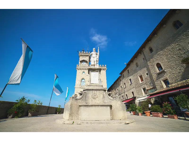 4️⃣Piazza della Libertà & Palazzo Pubblico: This lively square is the heart of San Marino, home to the stunning Palazzo Pubblico (Government Palace). Watch the changing of the guard ceremony, or simply soak in the medieval ambiance while enjoying a coffee at a nearby café.